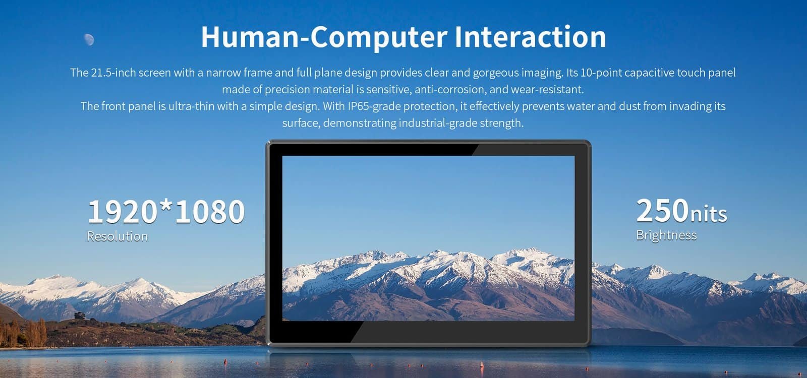 Vivid Touch Display: 21.5″ Full HD (1920×1080) 10-point capacitive touchscreen with 250-nit brightness, offering clear visuals and responsive control.